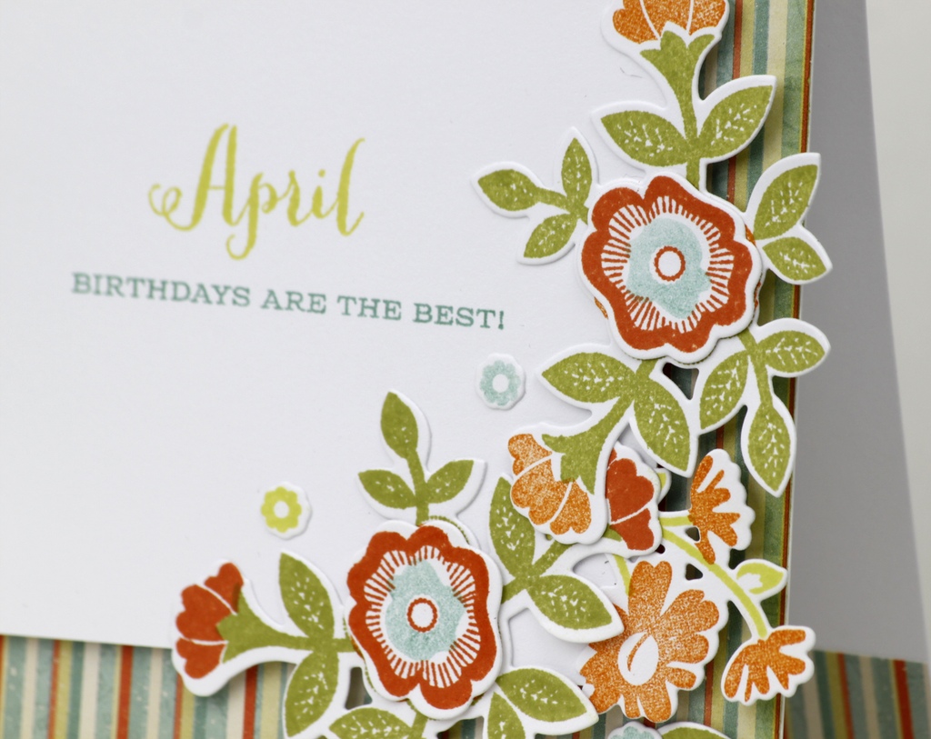Congratulations on your guest spot at Seize the Birthday! So well deserved! And what a beauty you've created! The cluster of flowers is so beautiful (love that striped paper behind it too) and I love the all the white space around the sentiment.