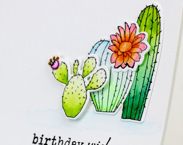 I love these cactus or is it cacti? They were fun to color and check out the freehand water coloring they are sitting on! I don't like to toot my own horn but a puddle of water like this doesn't come out of MY water pen every day! heeheehee