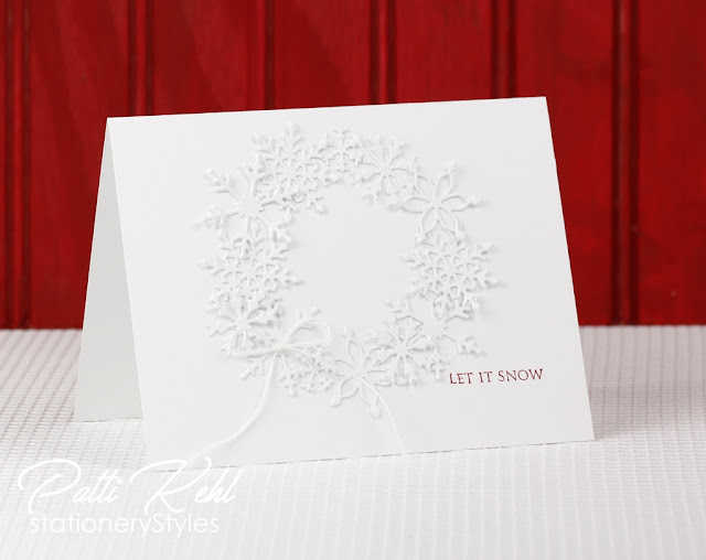 Patti, so nice to see you back and that you made it to your destination and are getting all settled in your new home. It looks fabulous. So happy for you. What a beautiful white on white card you created. Thanks for joining us at CAS Christmas.